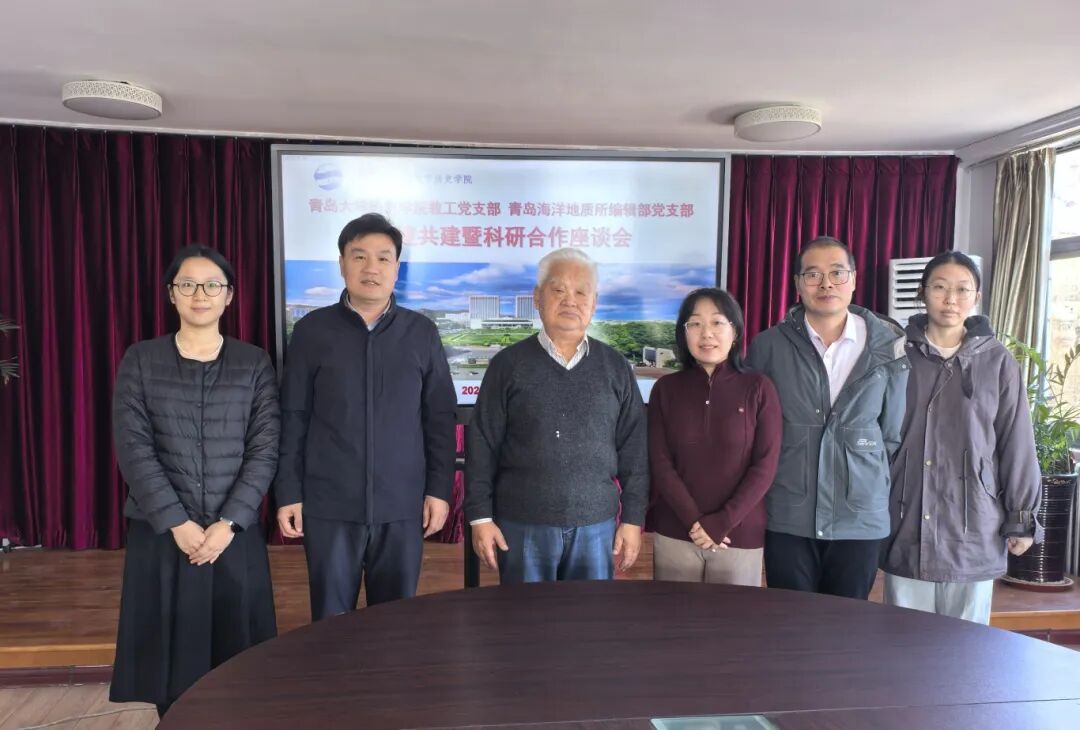 12月17日上午,青岛大学历史学院教工党支部与青岛海洋地质研究所编辑部党支部在历史学院会议室举行党建共建及科研合作座谈会。青岛海洋地质研究所原所长刘守全、编辑部主任刘锐,青岛大学历史学院党委书记刘宗国、副院长赵九洲,青年教师曲静、郭嘉琪参加座谈。